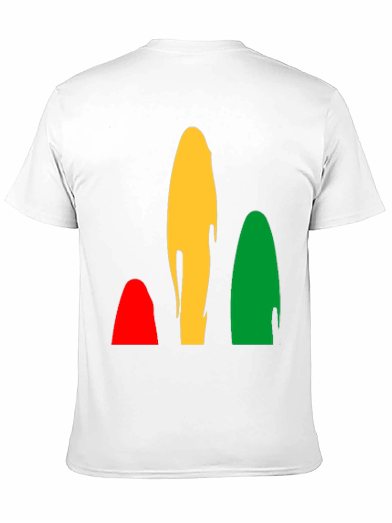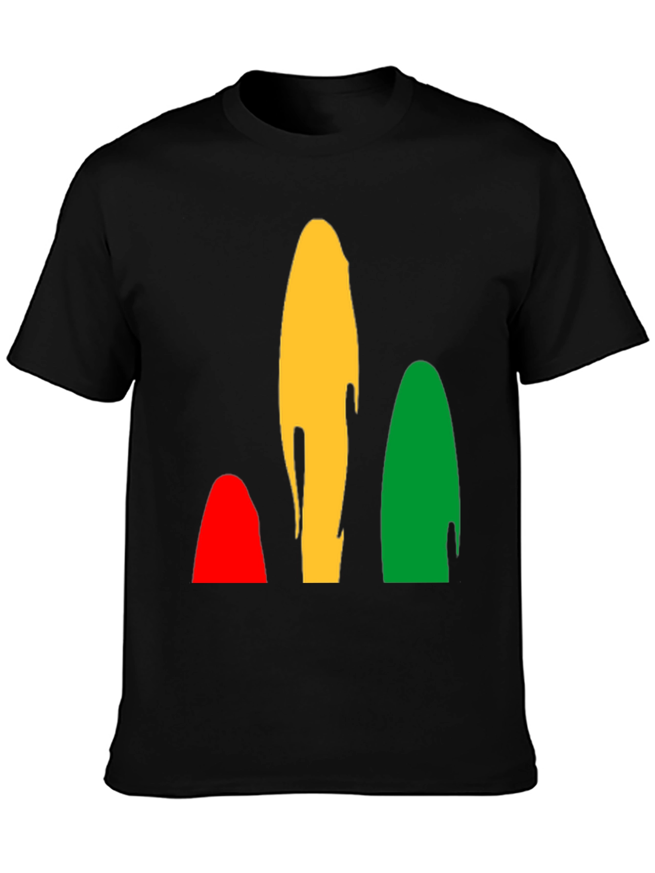 Express your unique style with this eye-catching black t-shirt featuring an abstract color block design. The shirt showcases bold red, yellow, and green shapes, creating a modern and artistic statement. Made from comfortable materials, this tee is perfect for casual wear, making it a versatile addition to your wardrobe. Whether you're hanging out with friends or heading to a casual event, this shirt will keep you looking stylish and feeling great. Stand out from the crowd and showcase your fashion-forward taste with this one-of-a-kind design.