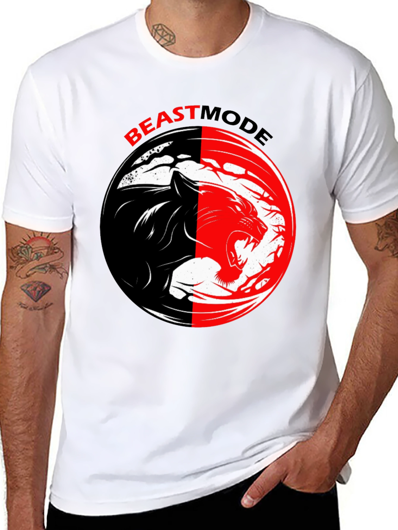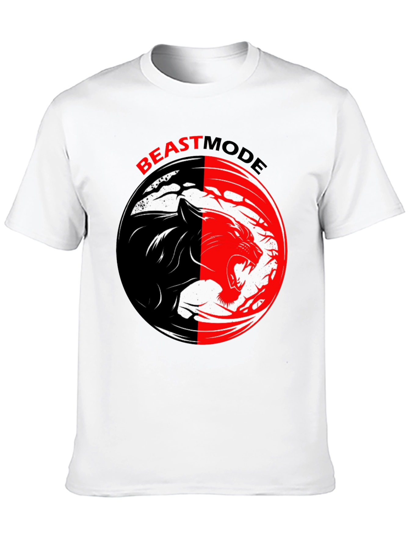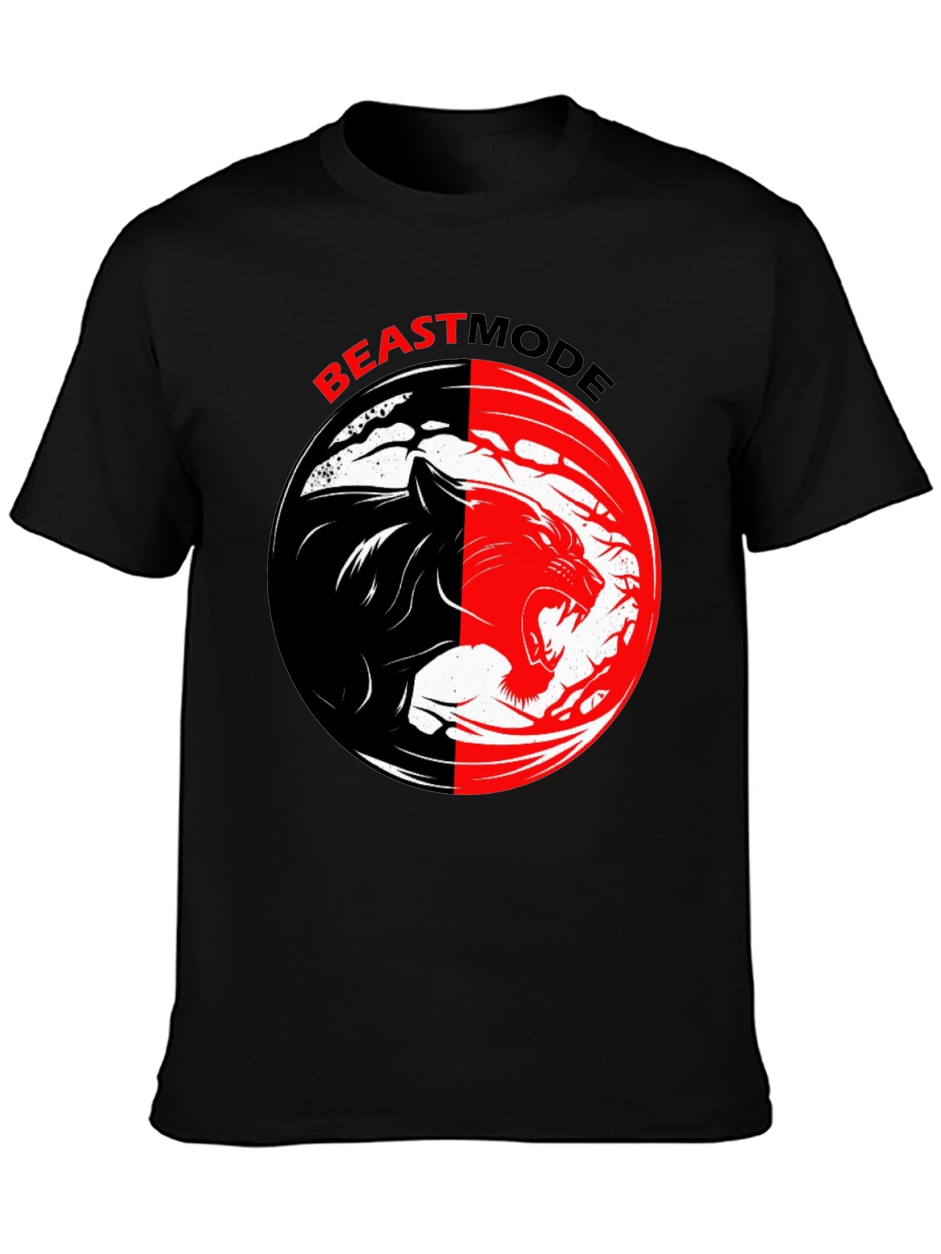 Unleash your inner beast with this striking black t-shirt. Featuring a bold, eye-catching graphic, it showcases a half-black, half-red fierce panther design encircled by the words "BEAST MODE." This shirt is perfect for making a statement at the gym or during your toughest workouts. Made from what appears to be soft, breathable cotton, this tee ensures comfort and durability. The classic fit makes it a versatile addition to any wardrobe. Wear it to fuel your motivation and show off your commitment to fitness and strength. Get yours today and conquer your goals!