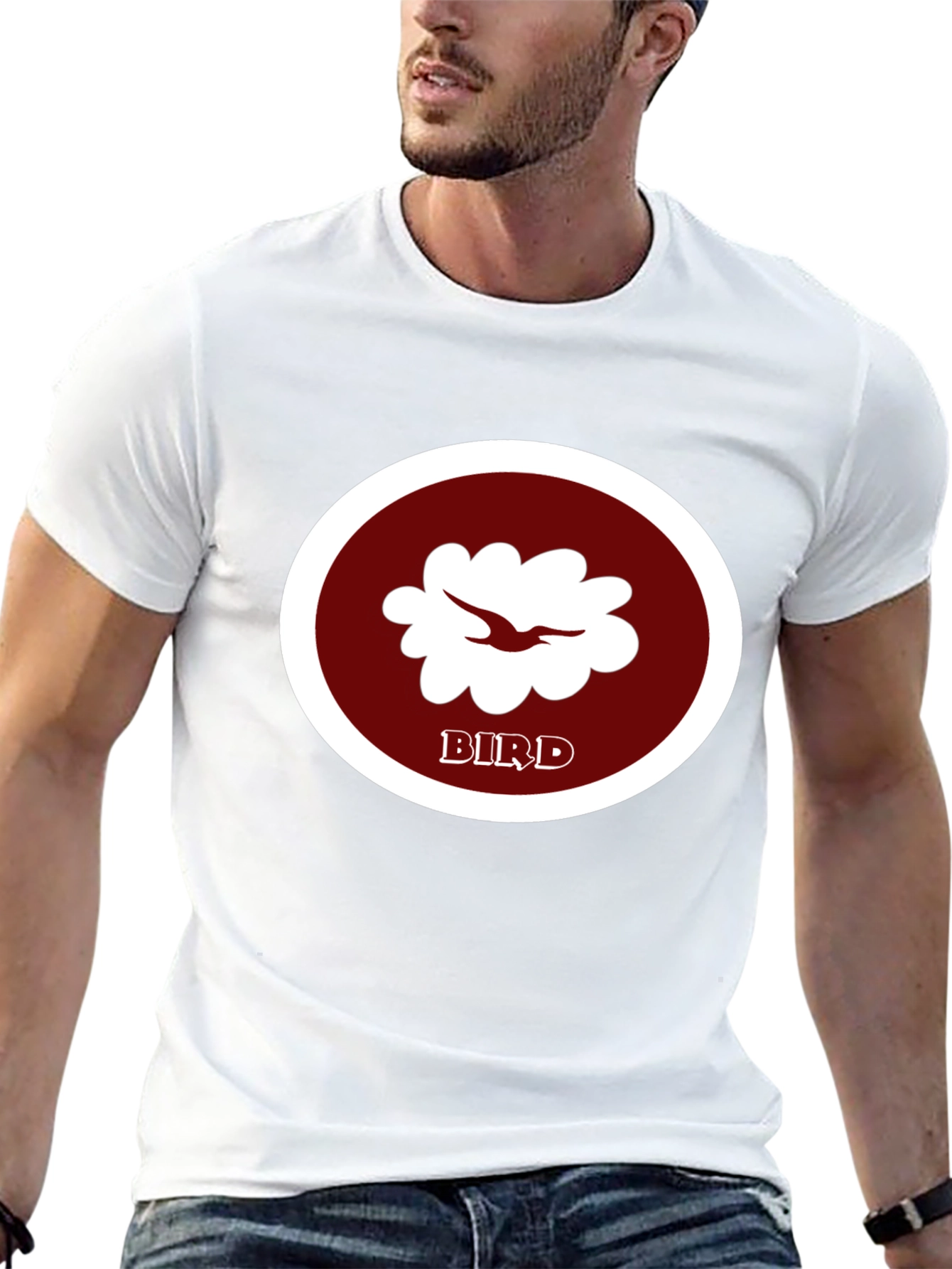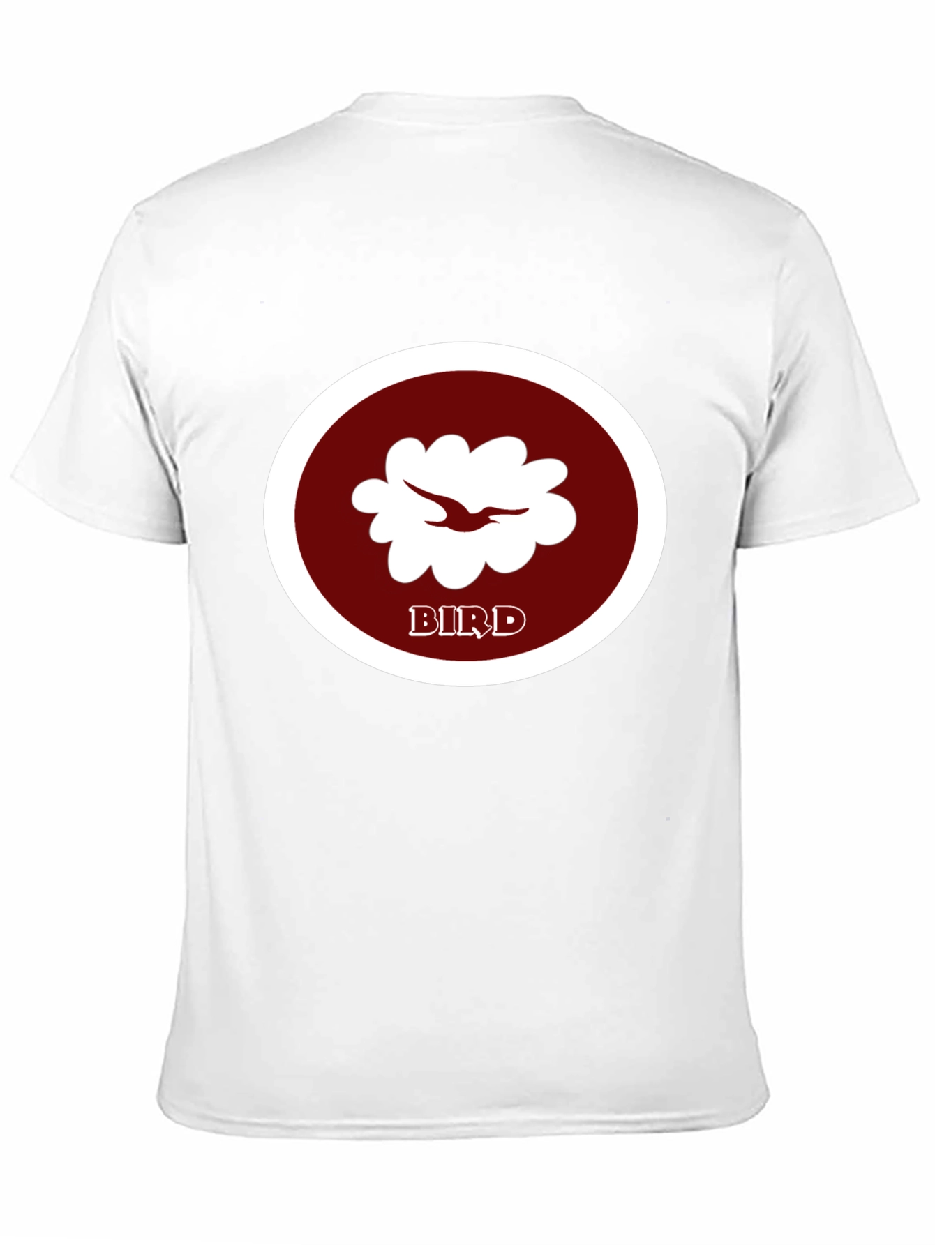 Show off your love for birds with this stylish black t-shirt. This shirt features a unique graphic of a bird-like design in a white circle with a dark red background and the word 'BIRD' printed below it. Made from comfortable material, this tee is perfect for everyday wear. Great for casual outings or as a conversation starter among bird enthusiasts. A must-have addition to any wardrobe!