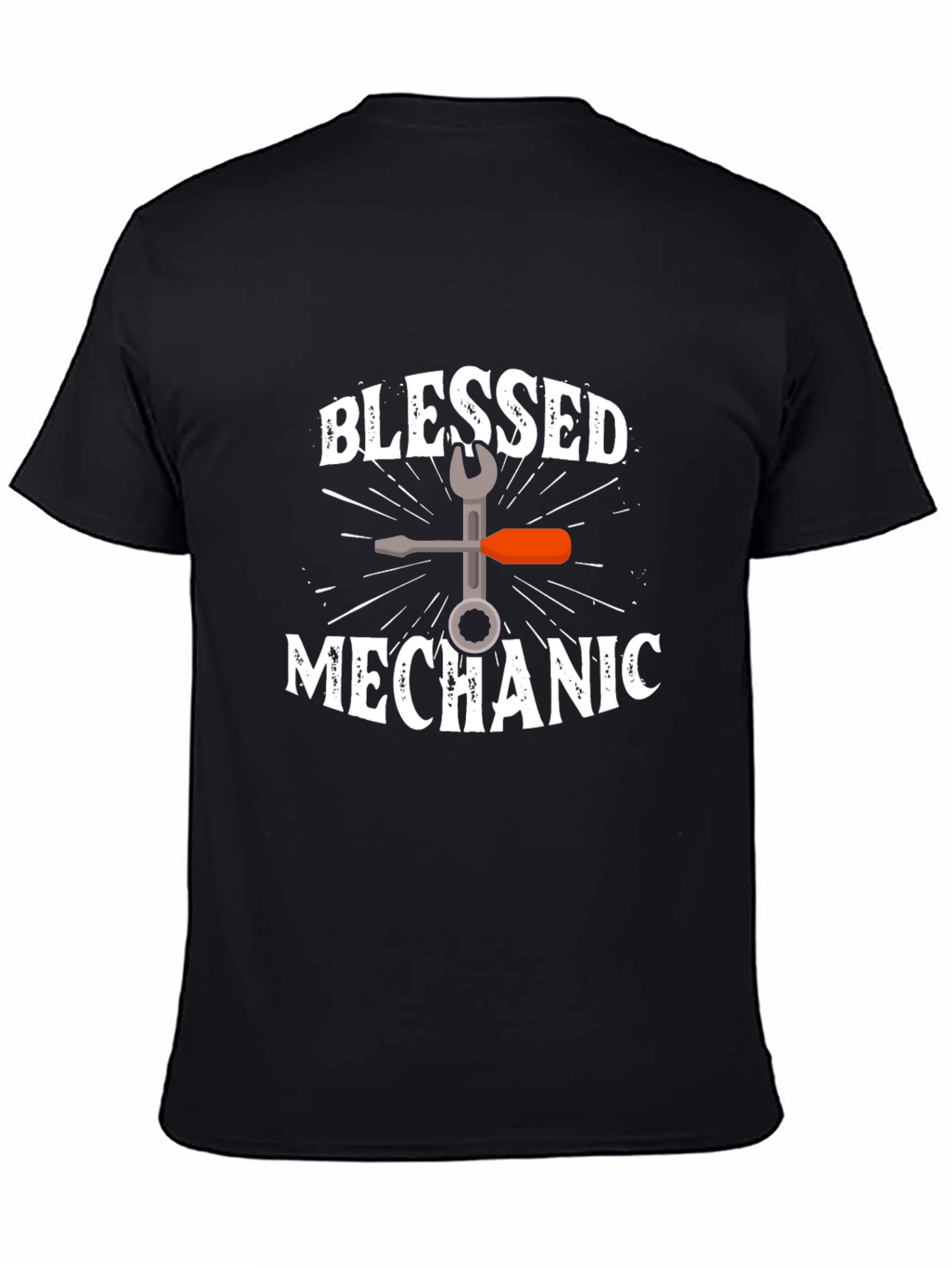 Show off your blessed mechanic skills with this stylish black t-shirt! Featuring a unique graphic design with "Blessed Mechanic" text, a wrench, and a screwdriver, this shirt is perfect for any hardworking mechanic who wants to show off their trade and faith. Made from comfortable material, it's ideal for everyday wear, in the garage, or as a casual statement piece. A great gift for the blessed mechanic in your life! Get yours today and let everyone know you're a blessed mechanic!