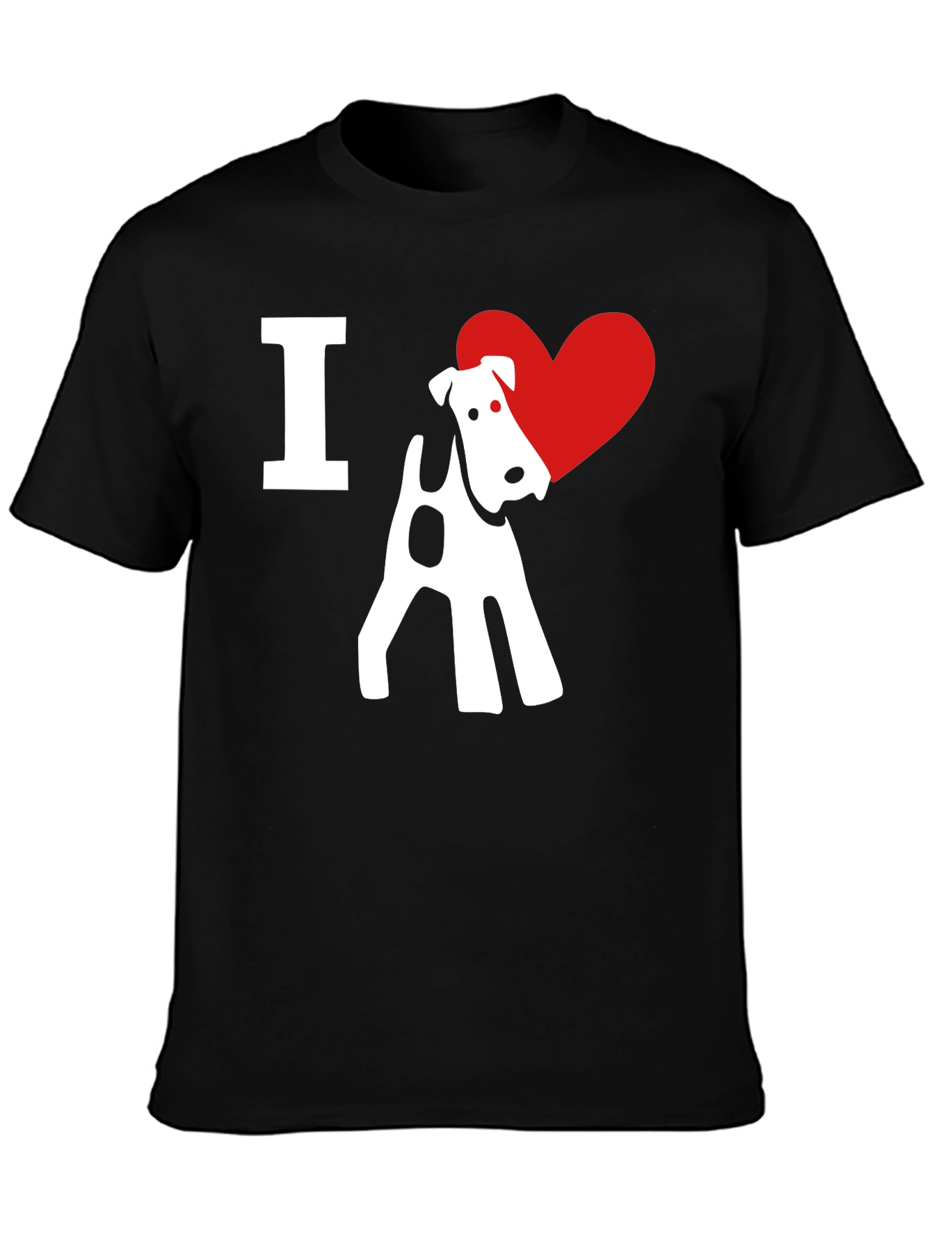 Show your love for Fox Terriers with this stylish black T-shirt. Featuring a unique graphic of a white Fox Terrier silhouette alongside a bold red heart, this shirt is perfect for dog lovers. The simple yet eye-catching design makes it a great conversation starter. Made from comfortable materials, this T-shirt is ideal for everyday wear. Whether you're running errands, walking your furry friend, or just lounging at home, this shirt is a fun and fashionable way to express your passion for Fox Terriers.