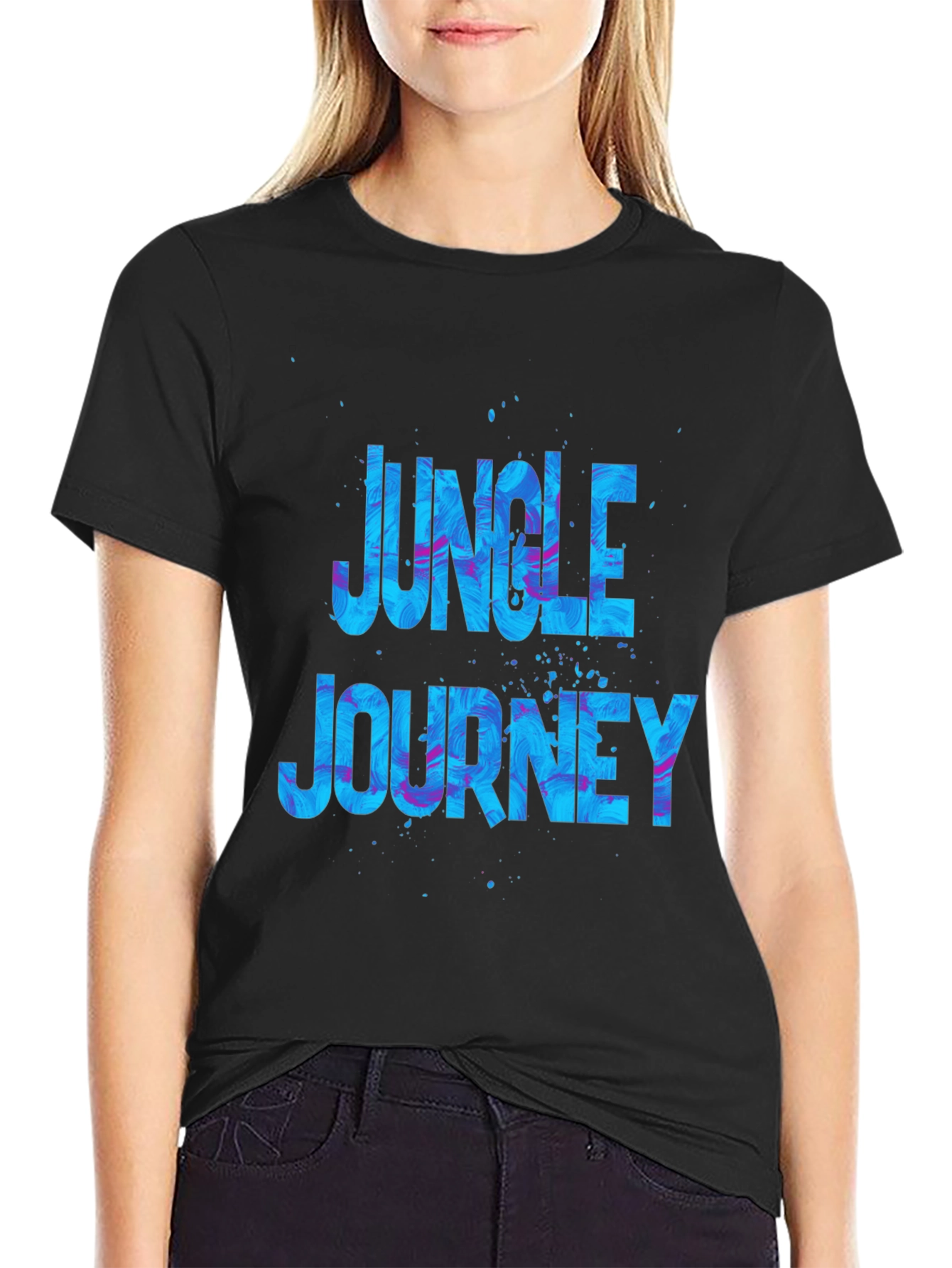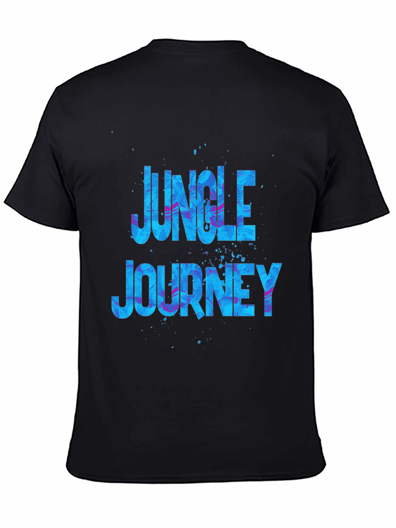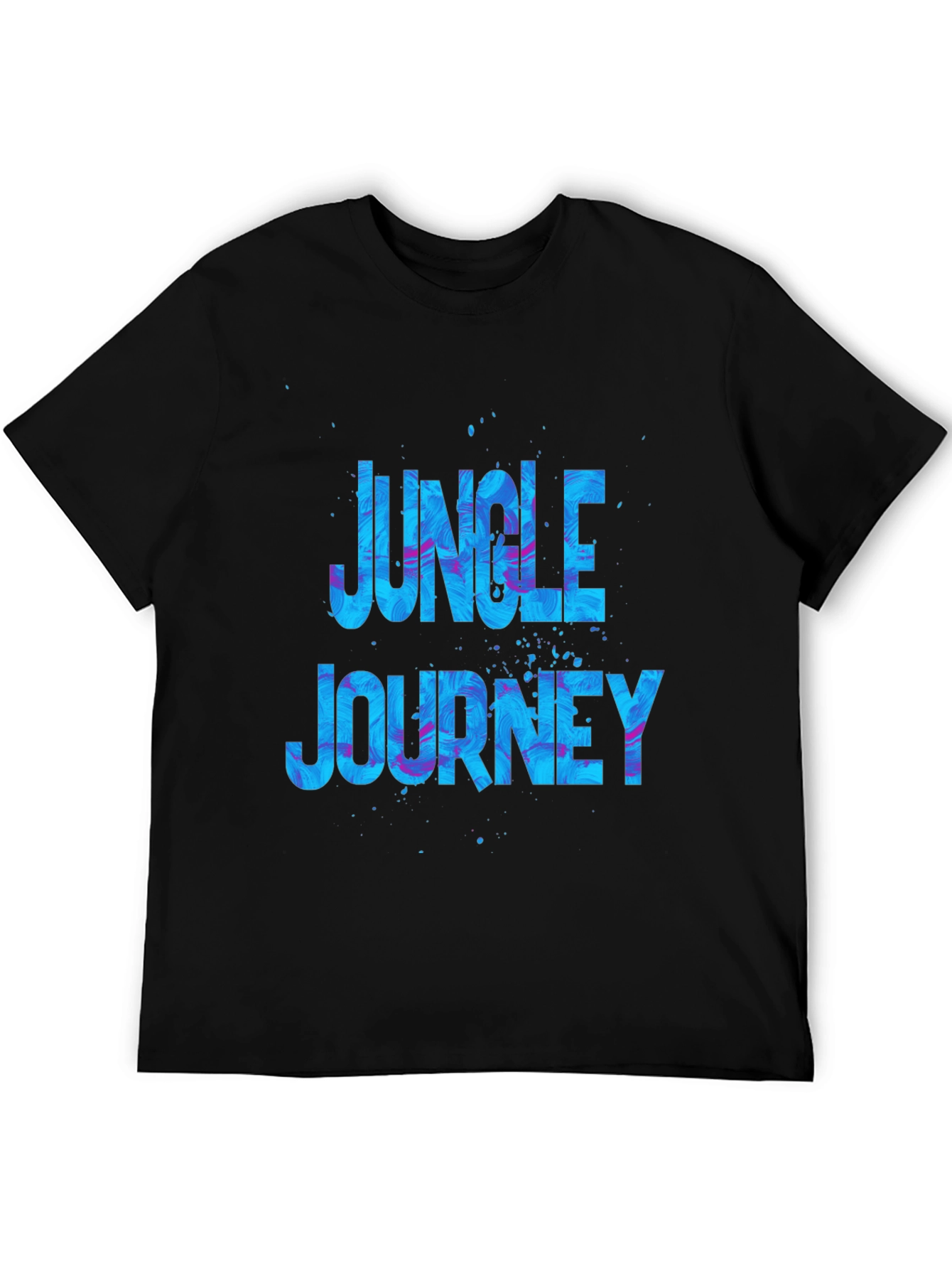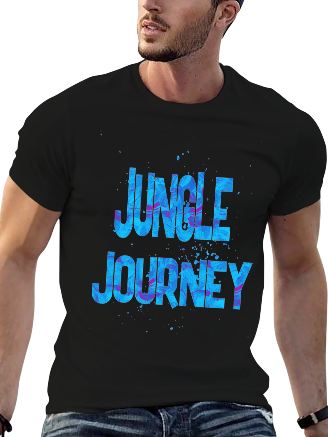 Embark on a stylish adventure with this eye-catching black t-shirt featuring a vibrant "Jungle Journey" graphic. The design boasts an aquatic blue and turquoise color scheme with a unique, swirling pattern that adds depth and visual interest. Crafted from what appears to be a soft and comfortable fabric, this tee is perfect for everyday wear. Whether you're exploring the city or relaxing with friends, this t-shirt makes a bold statement. Pair it with jeans or shorts for a casual yet fashionable look. Stand out from the crowd with this unique and expressive t-shirt.