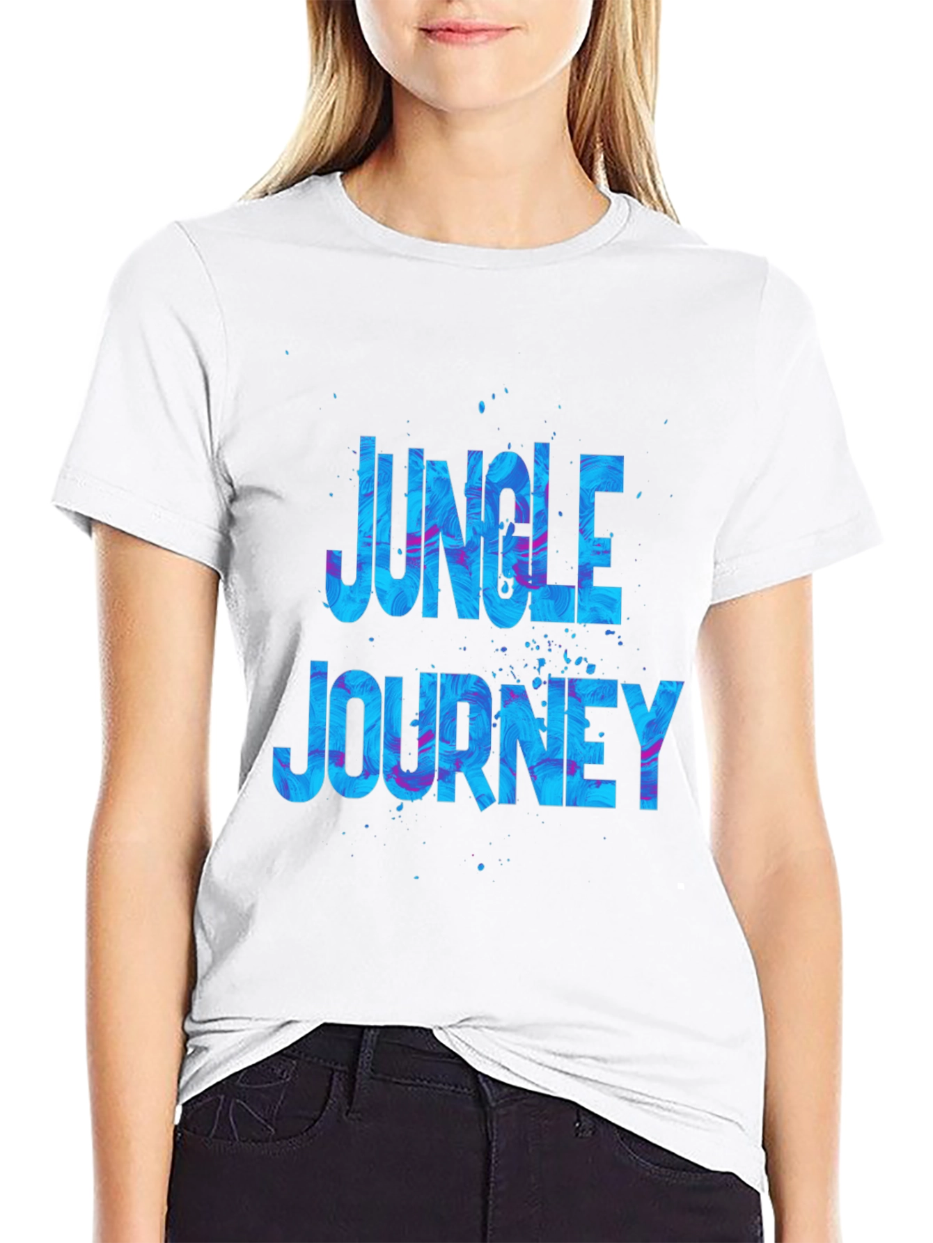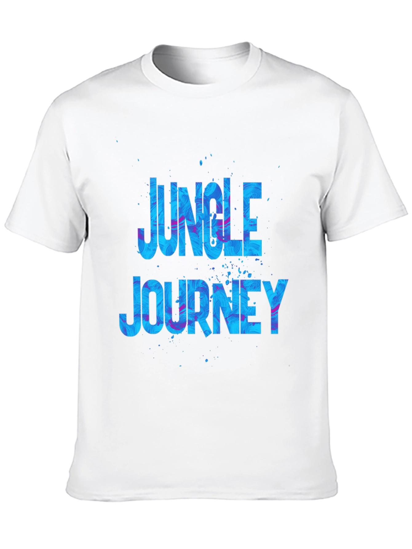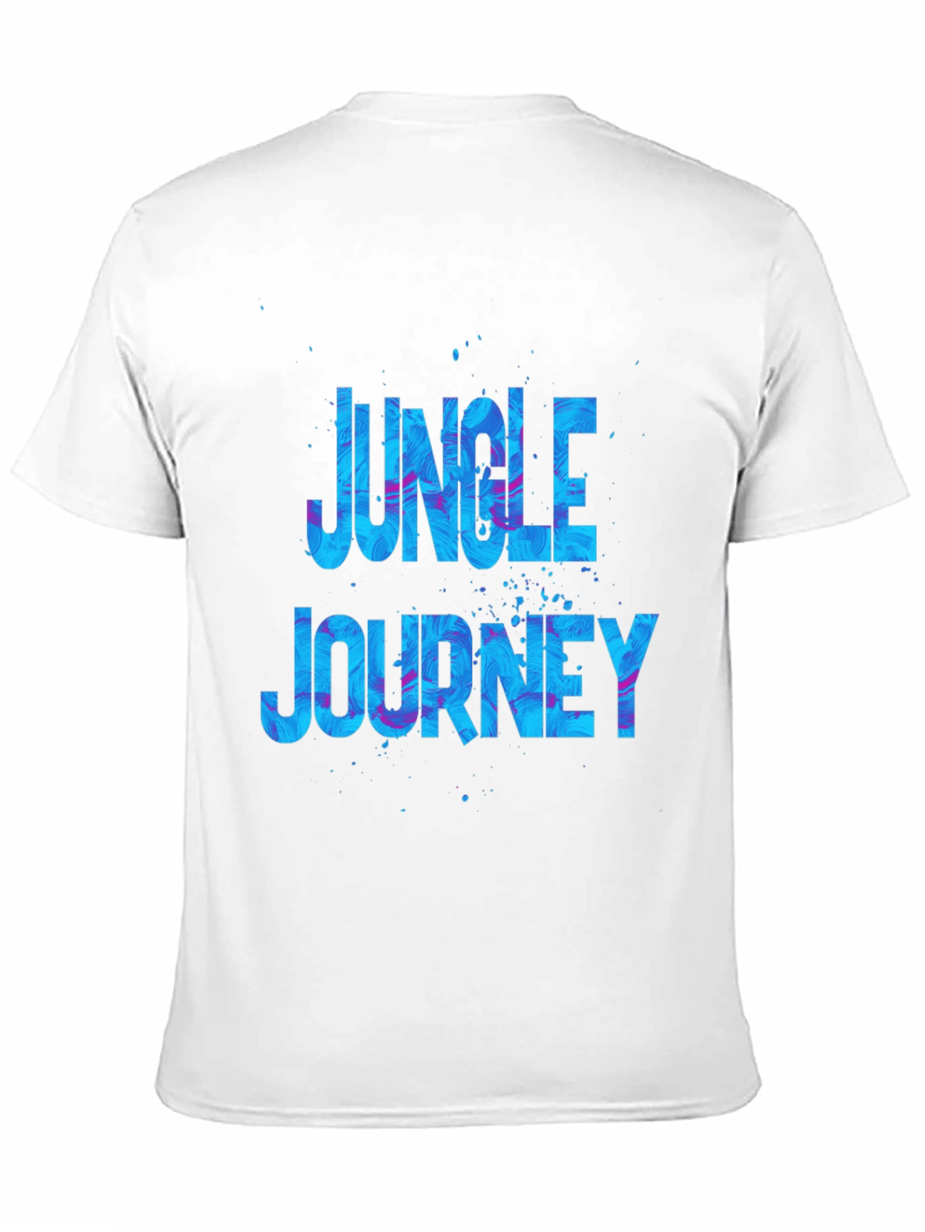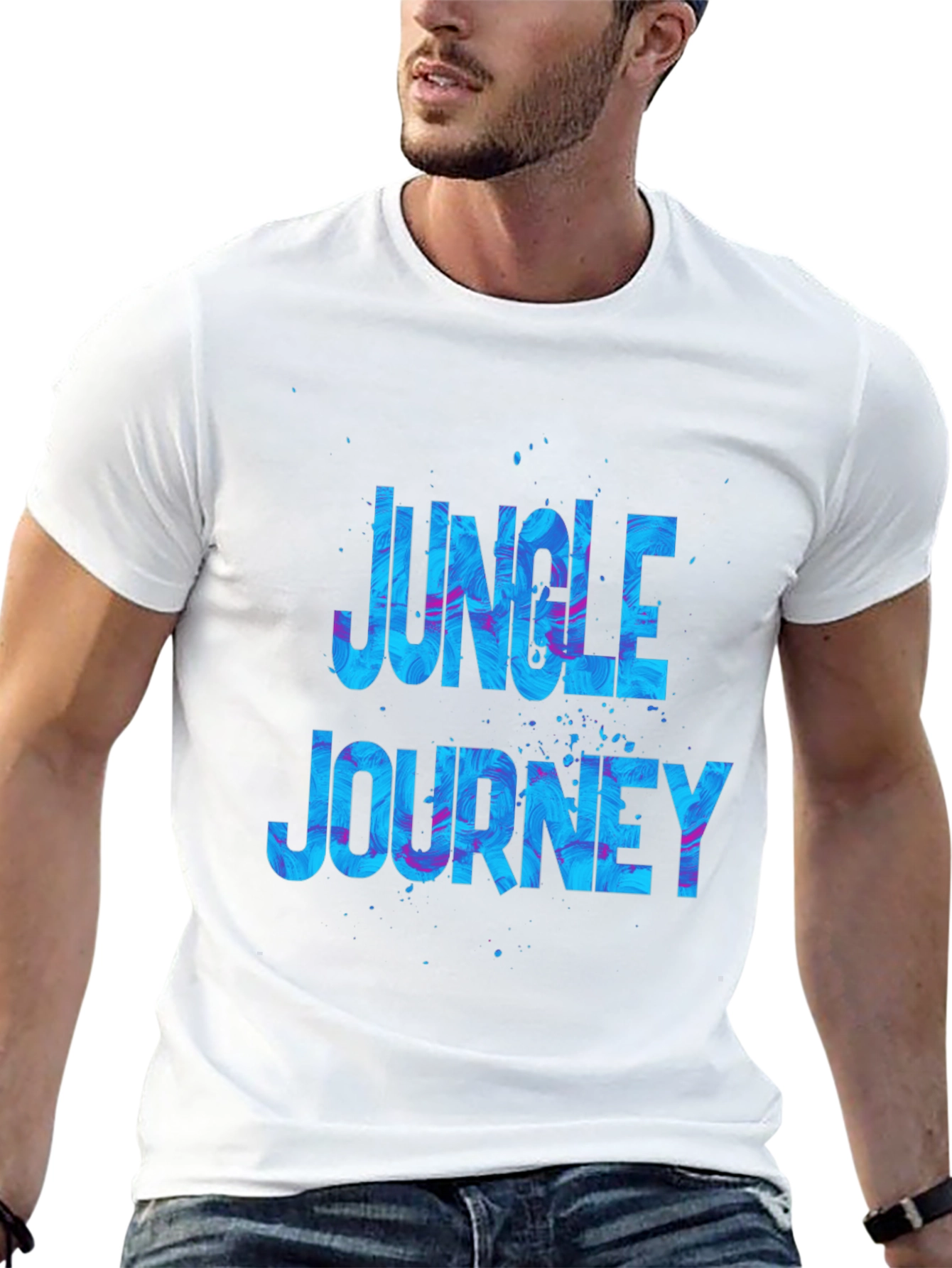 Embark on a stylish adventure with this eye-catching black t-shirt featuring a vibrant "Jungle Journey" graphic. The design boasts an aquatic blue and turquoise color scheme with a unique, swirling pattern that adds depth and visual interest. Crafted from what appears to be a soft and comfortable fabric, this tee is perfect for everyday wear. Whether you're exploring the city or relaxing with friends, this t-shirt makes a bold statement. Pair it with jeans or shorts for a casual yet fashionable look. Stand out from the crowd with this unique and expressive t-shirt.