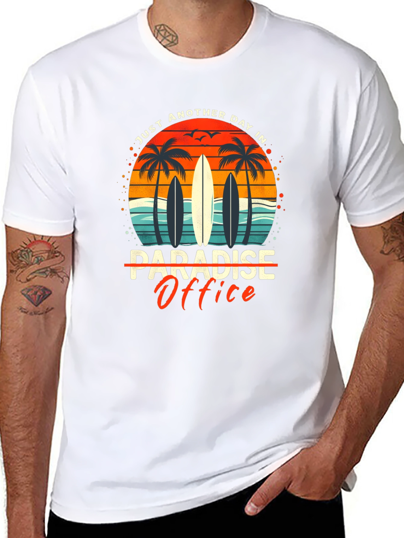 Paradise Office Graphic T-Shirt - Beach Surfboard Design