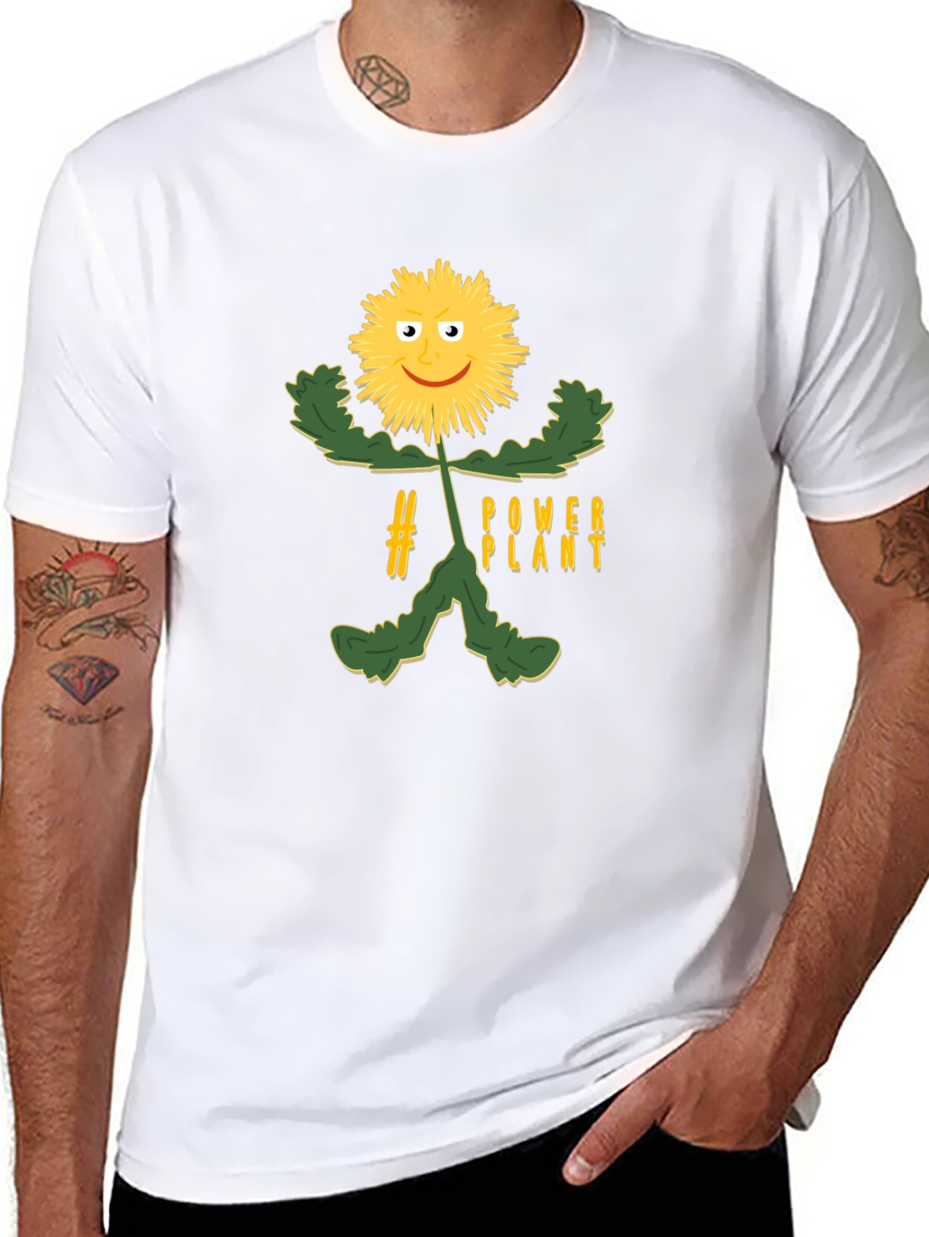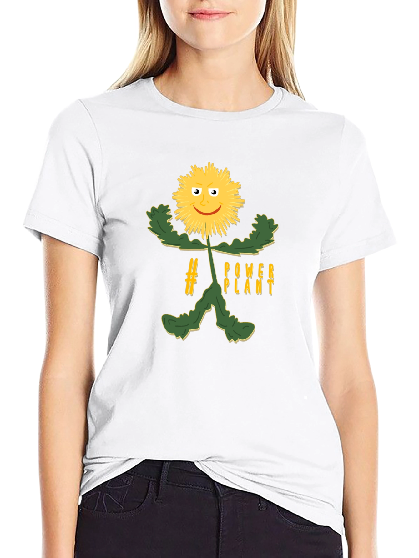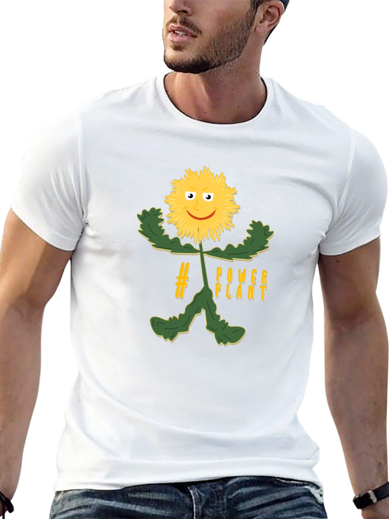 Show your plant power with this fun black graphic tee! Featuring a cartoon dandelion character with a smiling face, leafy arms and legs, and the words '# POWER PLANT', this t-shirt is perfect for anyone who loves nature, plants, and spreading positive vibes. Made from a soft and comfortable fabric, this unisex t-shirt is ideal for everyday wear. The eye-catching graphic makes it a great conversation starter and a unique addition to your wardrobe. Whether you're gardening, hanging out with friends, or just relaxing at home, this tee will keep you feeling good and looking great. Embrace your inner plant enthusiast with this must-have t-shirt!