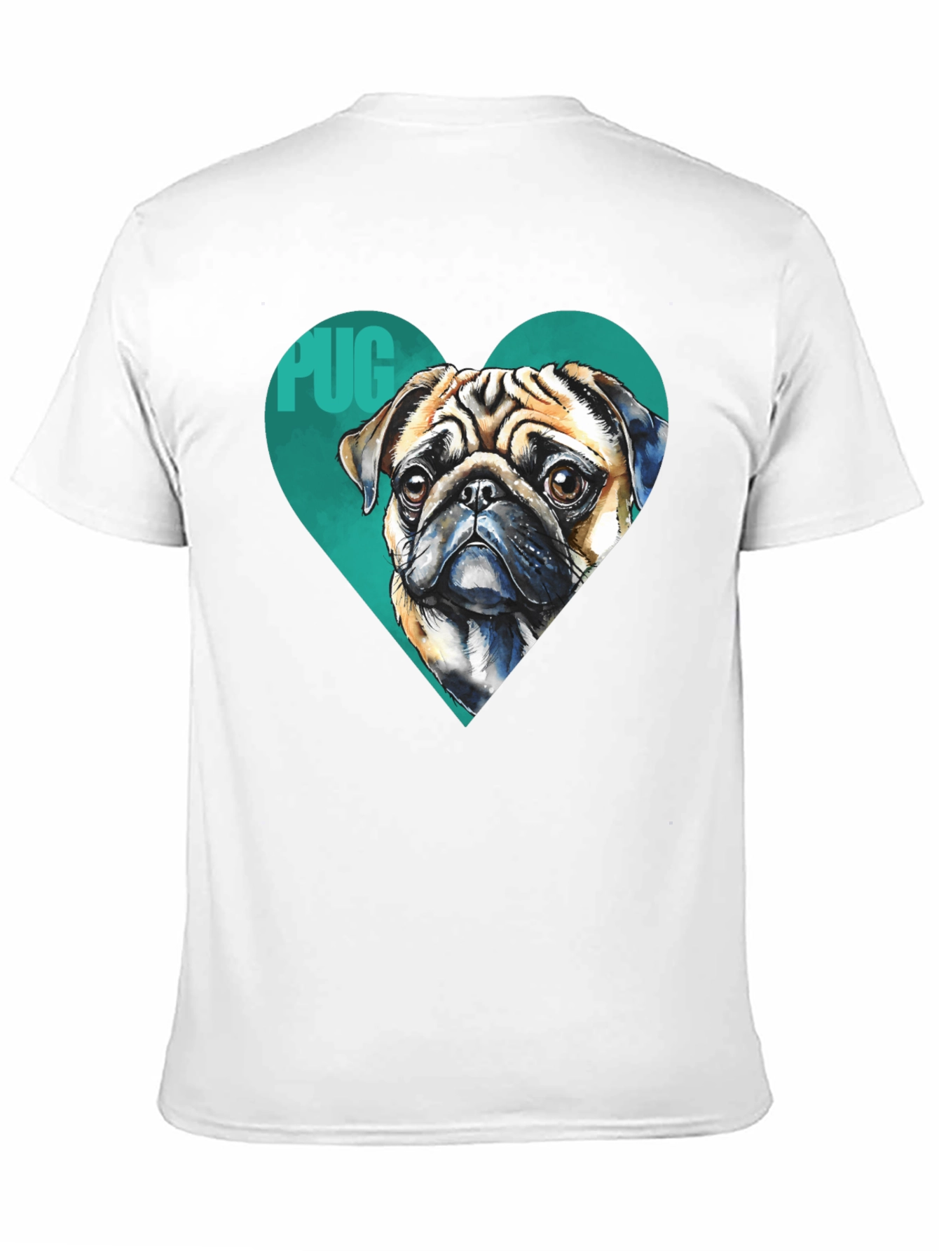 Show your love for pugs with this stylish black t-shirt. Featuring a charming pug graphic enclosed in a green heart, this tee is perfect for any dog lover. Made from a comfortable-looking fabric, this casual wear is ideal for everyday use. The eye-catching design makes it a great conversation starter and a wonderful way to express your passion for these adorable companions. Whether you're heading to a dog park, casual outing, or simply relaxing at home, this pug heart t-shirt is a comfortable and fashionable choice. Get yours today and let your love for pugs shine!
