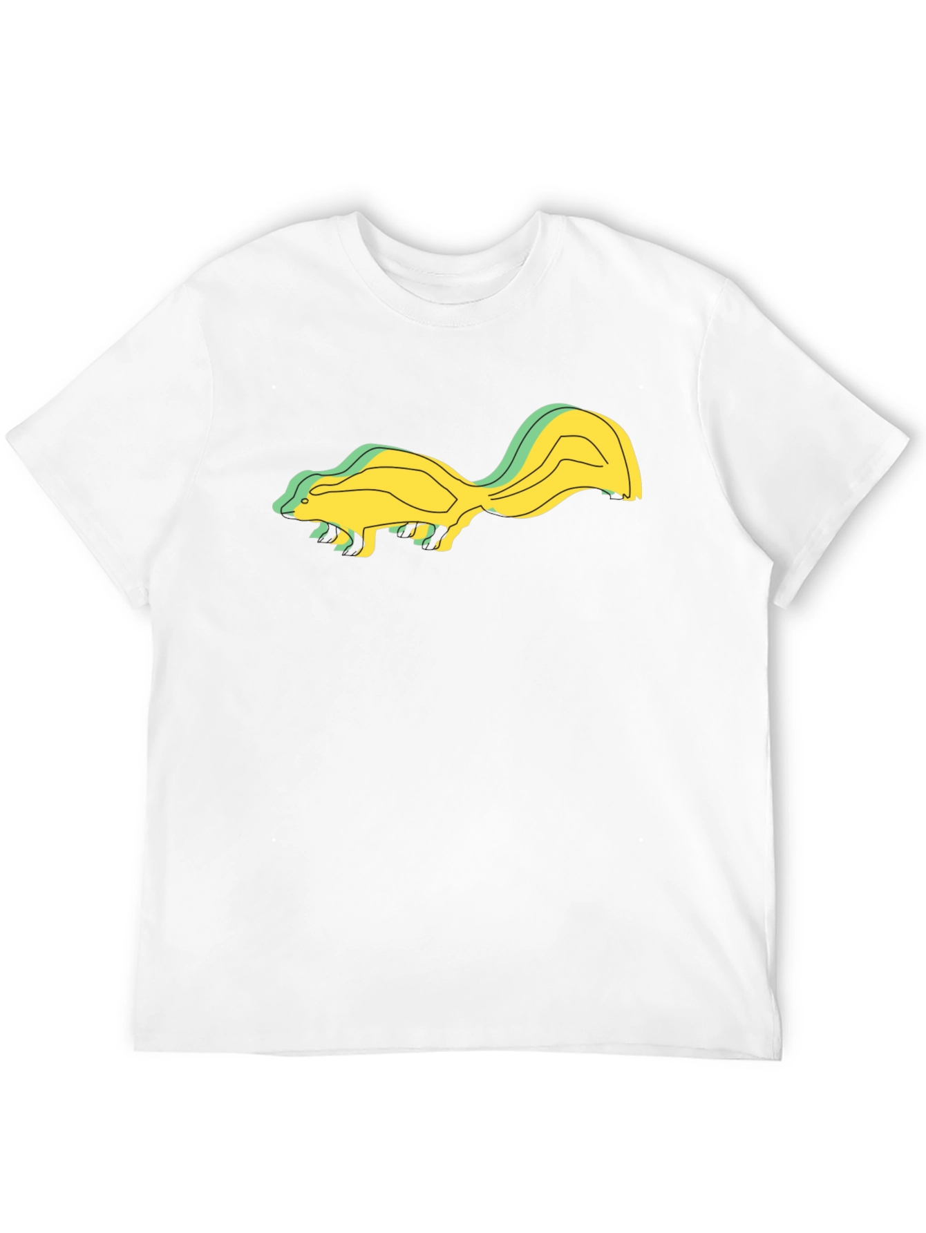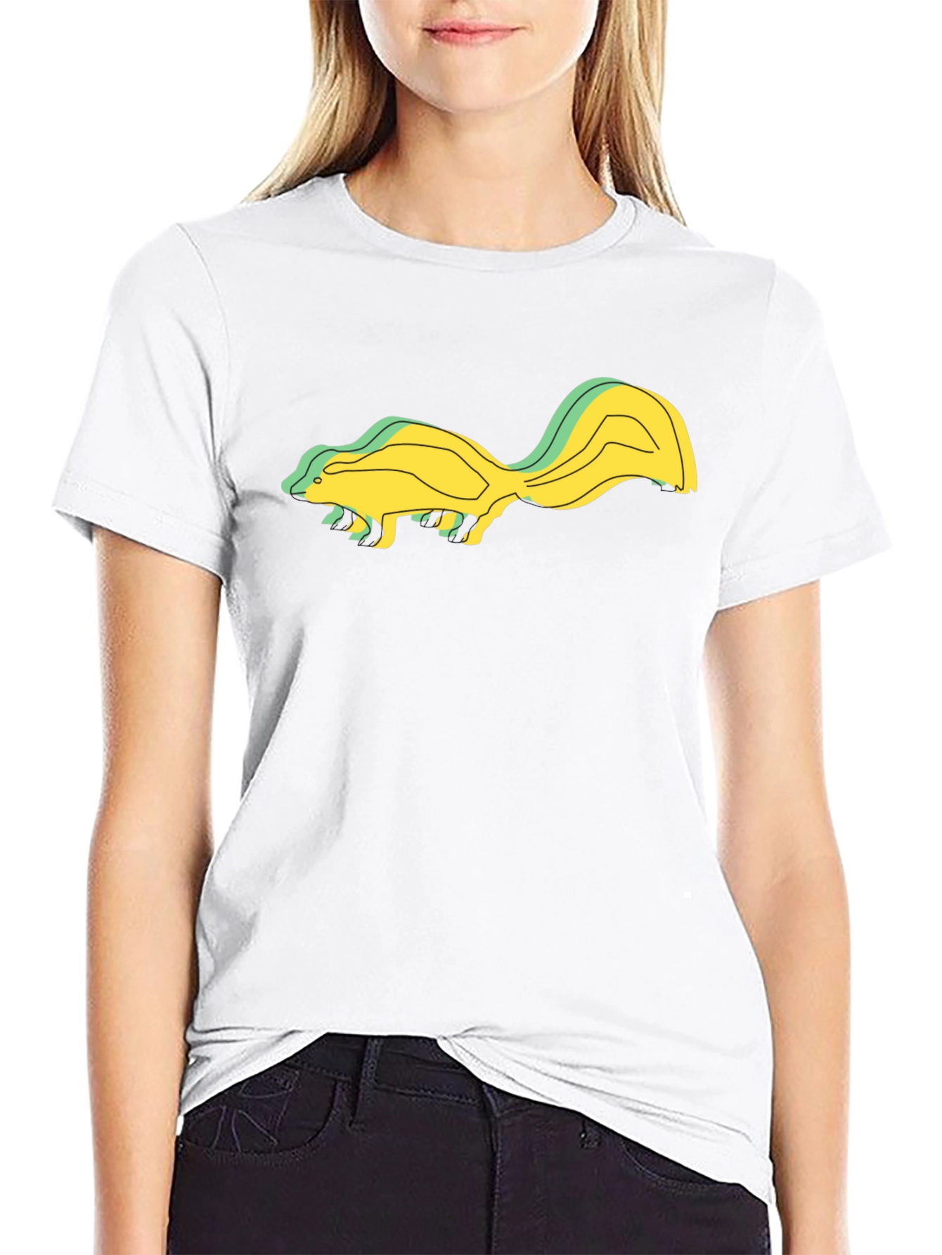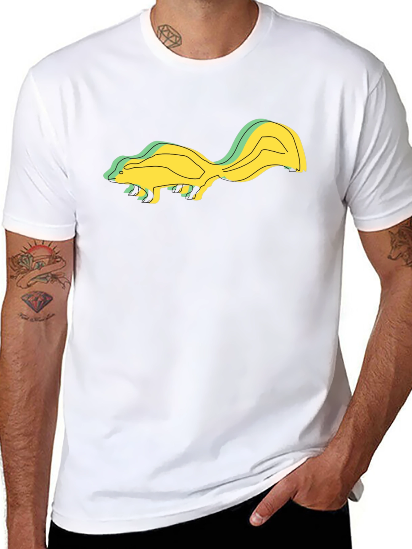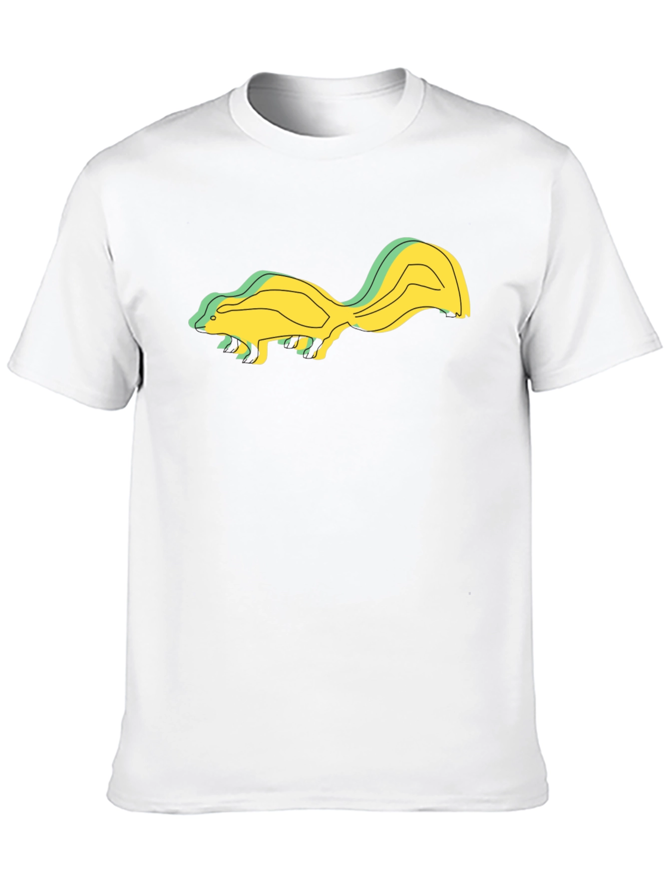 Show off your wild side with this unique skunk graphic t-shirt. The tee features a quirky, stylized skunk design in vibrant yellow and light green, creating a standout visual. Made from a comfortable black cotton blend, this tee offers a classic fit that's perfect for everyday wear. Whether you're making a statement or just adding a touch of fun to your outfit, this skunk tee is sure to impress. Its breathable fabric ensures all-day comfort, making it ideal for casual outings, concerts, or just lounging around. This eye-catching design is perfect for animal lovers and those who appreciate a touch of humor in their wardrobe. A must-have addition for your unique tee collection.