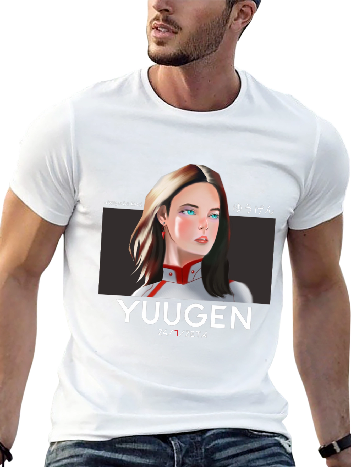Embrace your love for anime with this stylish black t-shirt. The shirt features a striking graphic print of a young anime-style woman, complemented by Japanese text and the word "YUUGEN." Made from what appears to be soft, breathable cotton, this tee offers both comfort and style. The clean design and crisp graphics make it suitable for everyday wear, anime conventions, or casual outings. Pair it with jeans, shorts, or your favorite cosplay accessories. Show off your unique style and passion for Japanese animation with this eye-catching t-shirt. Get yours today and experience the magic of Yuugen!